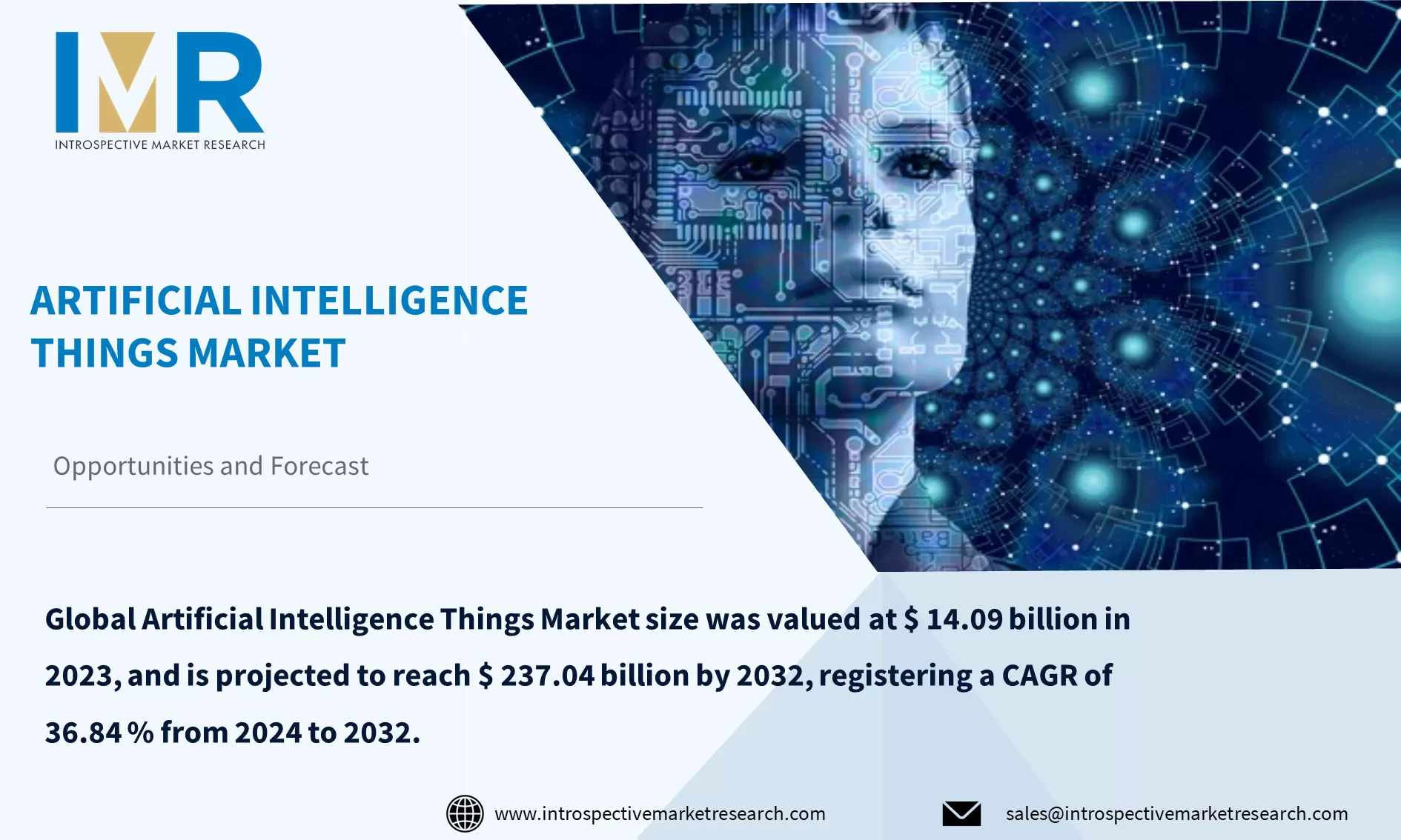 According to a new report published by Introspective Market Research, titled, ?Global Artificial Intelligence Things Market By Technology (Machine Learning, Deep Learning, Ambient Intelligence, Smart Objects, Big Data, Others {Data Analytics, Edge Computing, Embedded System}), Applications (Smart Retail, Smart Office Buildings, Video-Based Traffic Management, Autonomous Vehicle, Health Care), Components (Platform, Software, Service), End Users (BFSI, IT & Telecom, Insurance, Autonomous Vehicles, Personalized Fitness, Other {Remote Healthcare, Precision Agriculture}), And Region: Global Opportunity Analysis and Industry Forecast, 2024?2032,? the