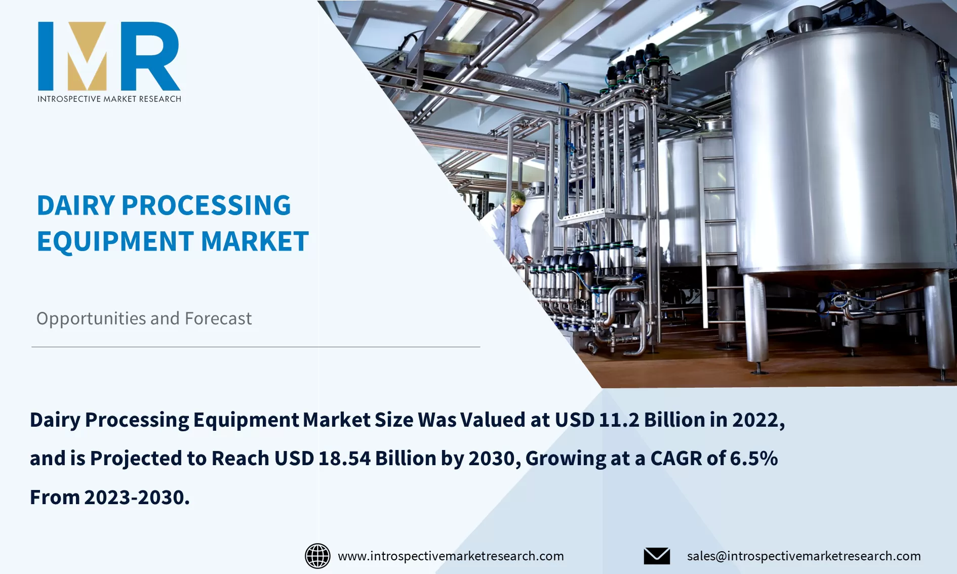 Dairy Processing Equipment Market Size Was Valued at USD 11.2 Billion in 2022, and is Projected to Reach USD 18.54 Billion by 2030, Growing at a CAGR of 6.5% From 2023-2030.