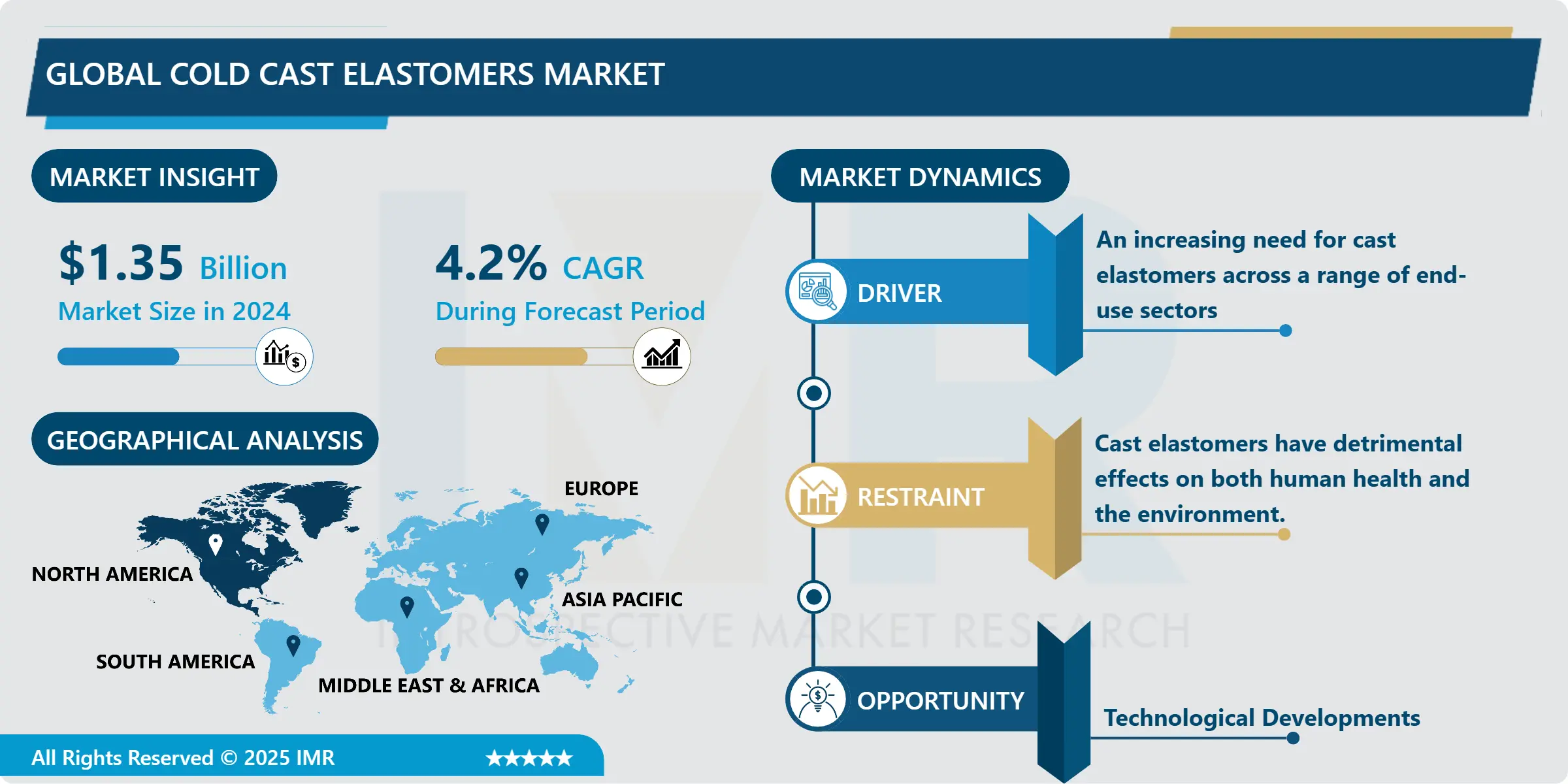- Causing the rise of cold cast elastomers as a universal material among differing industries are including the high performance and light weight characteristics. The cold cast elastomers are the product that manufacturers are seeking for getting plastics that have properties such as flexibility and durability, abrasional resistance, and chemical resistance.
