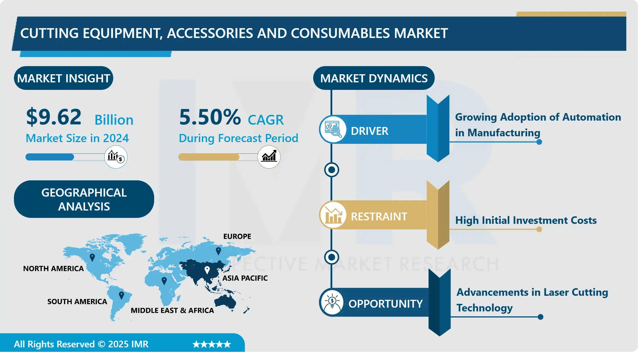 Cutting Equipment, Accessories & Consumables Market Size Was Valued at USD 9.62 Billion in 2024, and is Projected to Reach USD 14.76 Billion by 2032, Growing at a CAGR of 5.50% From 2025-2032.