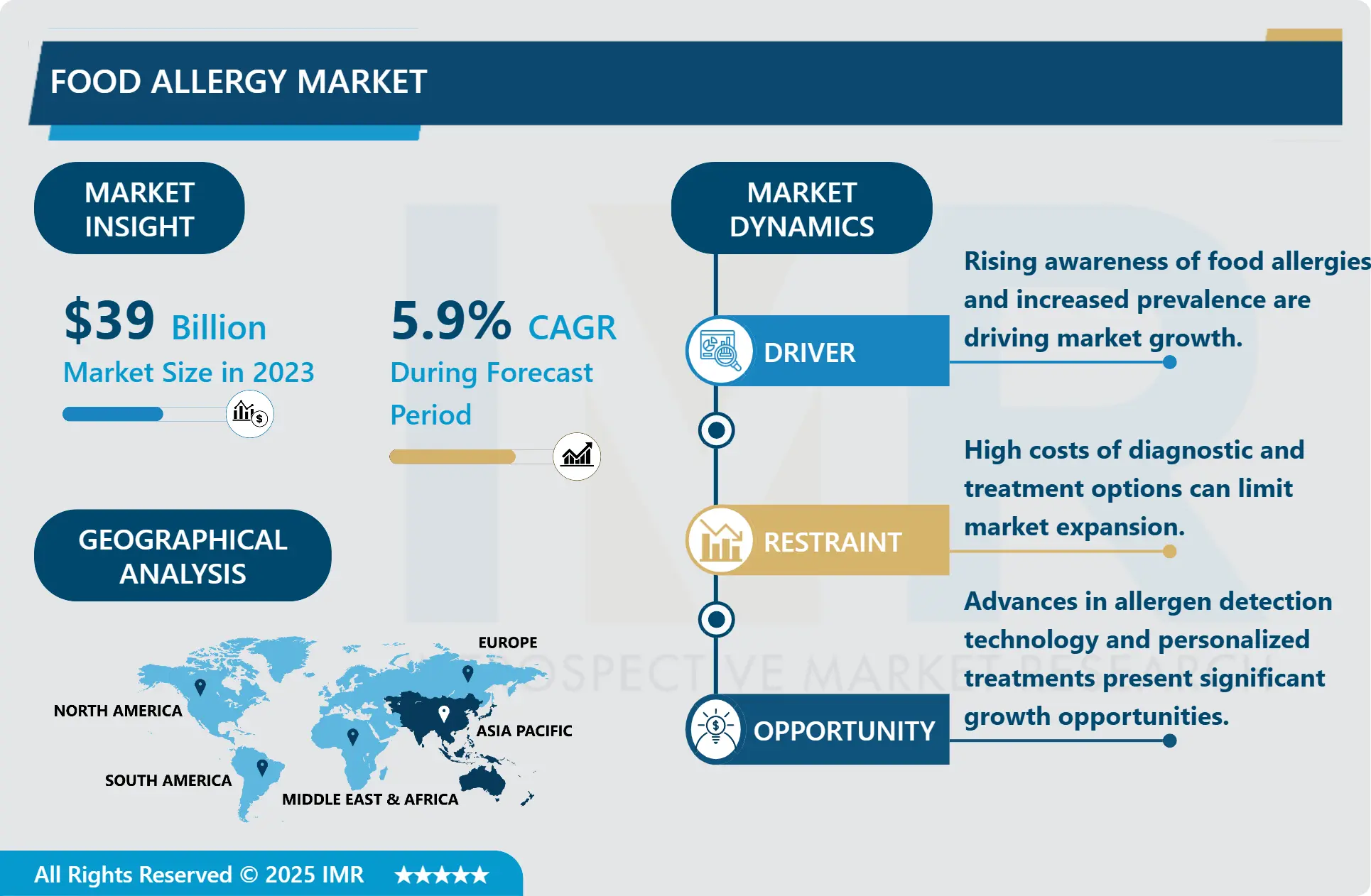 - In this ever-changing environment, we anticipate substantial progress in the food allergy market in the areas of diagnostic instruments, treatment options, and preventive measures. We anticipate innovations in allergen detection and personalized therapies to meet the increasing consumer demand for effective solutions.