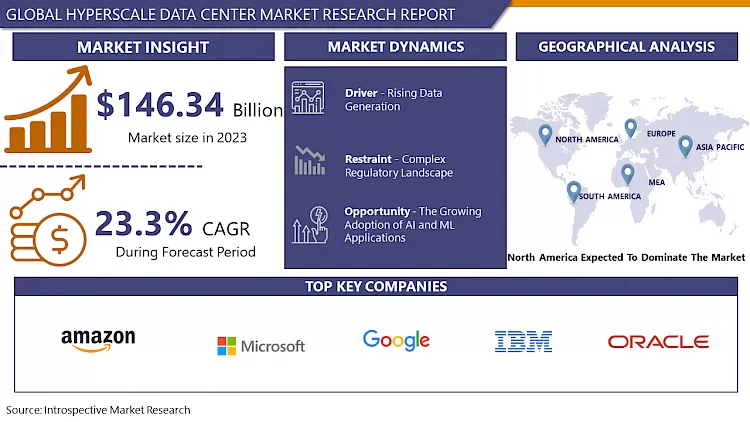 The exponential growth of data generated by individuals, businesses, and connected devices drives the demand for powerful data storage and processing capabilities. The growing reliance on cloud-based services and applications drives demand for hyperscale data centers as the underlying infrastructure. The hyperscale data center market is expected to expand in the coming years, propelled by factors such as rising data volumes, cloud adoption, and technological advancements.