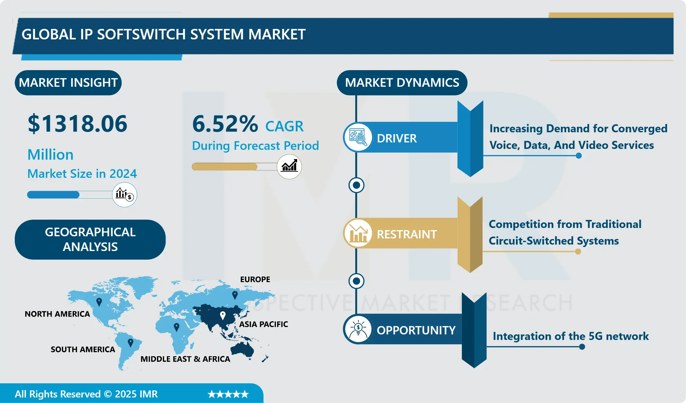 Global IP Softswitch System Market Size Was Valued at USD 1318.06 Million in 2024, and is Projected to Reach USD 2184.66 Million by 2032, Growing at a CAGR of 6.52 % From 2025-2032.