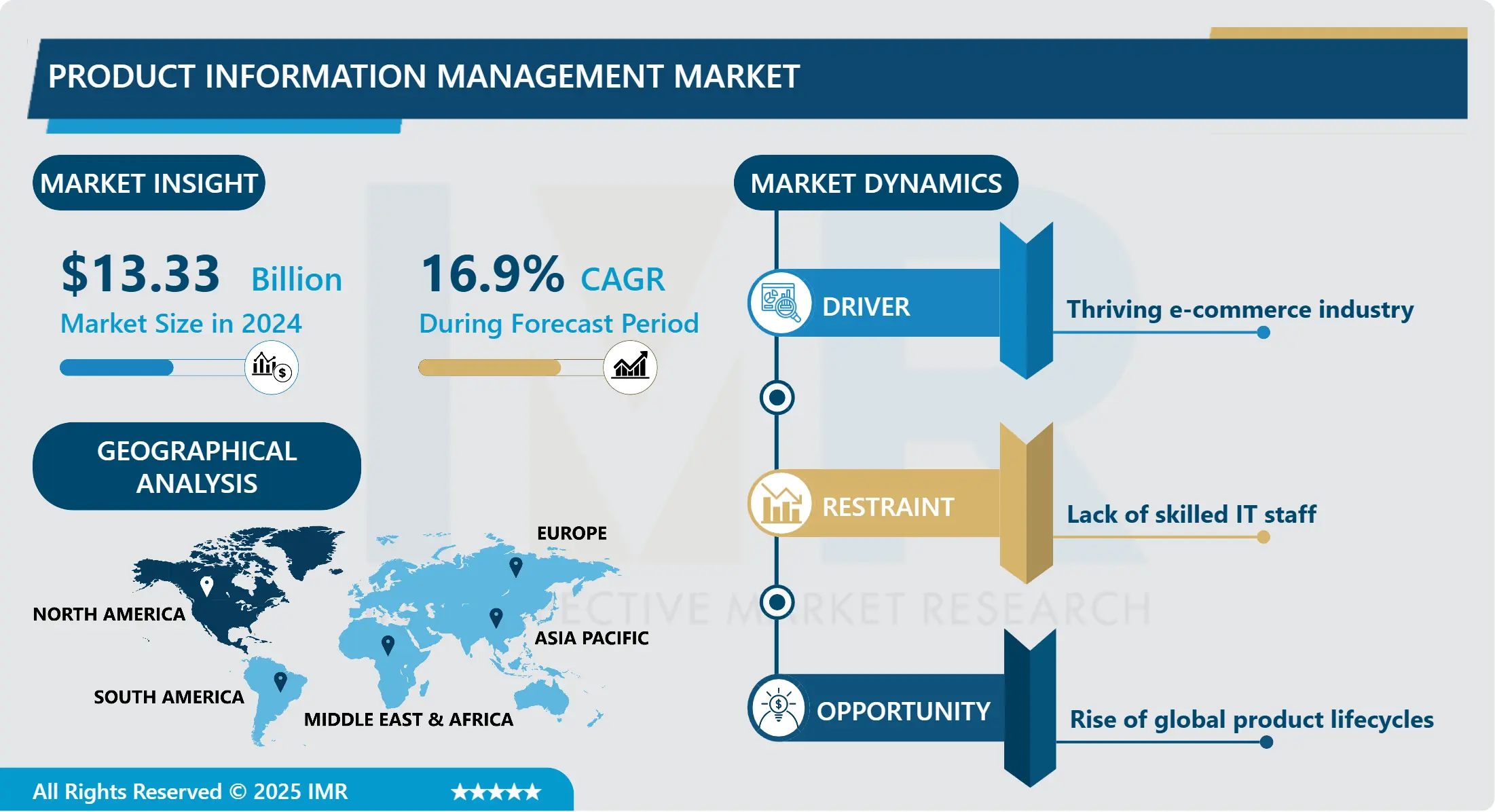 Product Information Management Market Size Was Valued at USD 13.33 Billion in 2024 and is Projected to Reach USD 46.49 Billion by 2032, Growing at a CAGR of 16.9 % From 2025-2032.